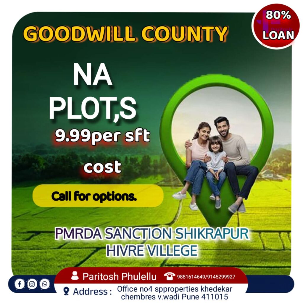 Discover legally sanctioned NA plots starting from ₹7.99 Lakhs in a 7-acre gated community near Pune. Enjoy lush green surroundings, modern amenities, and up to 80% bank loan facility—perfect for building your dream home or future investment.